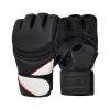 MMA gloves are lightweight, open-fingered gloves designed to protect the hands while allowing full dexterity for grappling and striking. They feature padded knuckles for impact absorption and an adjustable wrist strap for secure support. Built for mixed martial arts training and competition, they balance protection with freedom of movement.